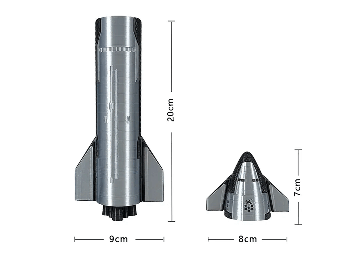 Brand: - Product Name: SpaceX Scale Model (1/200) Package Dimension: 30 x 20 x 10 cm (L × W × H) Gross Weight: 700g Material: PLA Craftsmanship: High-precision 3D printing technology